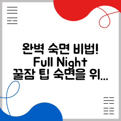 숙면을 위한 준비는 수면의 질을 향상시키는데 중요한 역할을 합니다. 특히 풀 나이트와 같은 완벽한 숙면을 경험하고 싶다면, 2시간 전부터 체계적인 준비가 필요합니다.